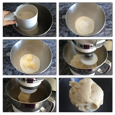 1º Para la base de galleta, tamizar la harina en un bol y amasar junto con el azúcar, la sal y la mantequilla. Formar una bola con la masa, cubrir con film de plástico y reposar 2 horas en la nevera.