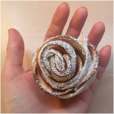 8º Colocar las rosas sobre los huecos de la bandeja y hornear entre 30-45 minutos hasta que el hojaldre se cocine.