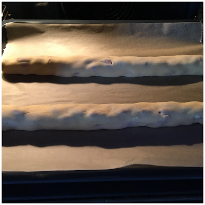 6º Transcurrido este tiempo, retirar del horno, cortar en rebanadas de 1 cm. de grosor aproximadamente.